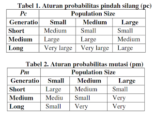 Xu dan Vukovich (1993) dalam penelitiannya yang berjudul Fuzzy Genetic Algorithm With Effective Search and Optimization mengembangkan sebuah model untuk algoritma fuzzy evolusi yang menggunakan sistem fuzzy untuk penentuan parameter yang digunakan algoritma genetika. Model yang dikembangkan tersebut menggunakan 2 buah sistem fuzzy untuk menentukan nilai probabilitas pindah silang dan nilai probabilitas mutasi. Kedua sistem fuzzy tersebut menggunakan ukuran populasi dan jumlah generasi sebagai masukan.